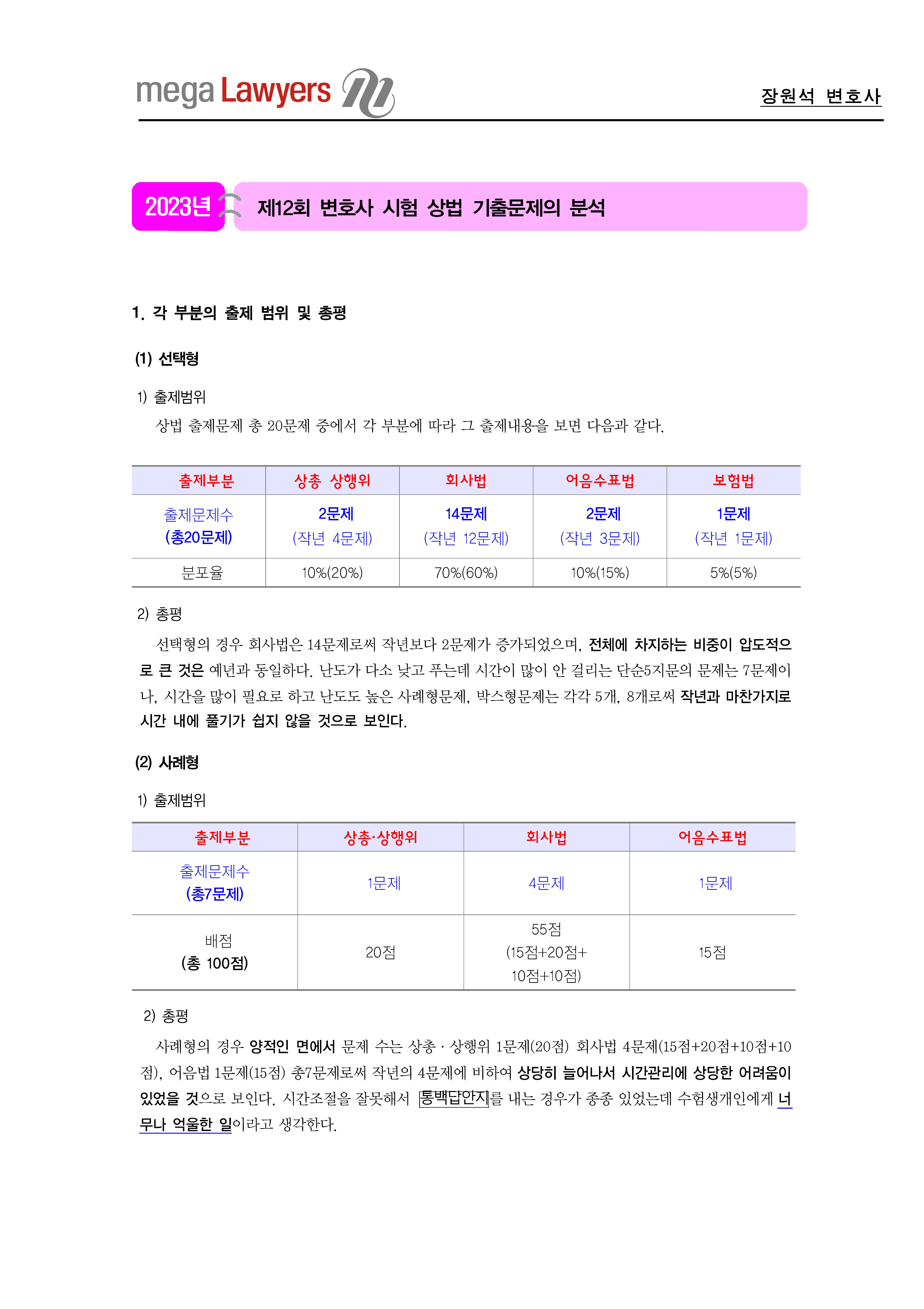 나눔에듀 장원석 변호사님의 제12회 변호사시험 상법 총평입니다 도서출판 나눔에듀 애프터 로스쿨 Als